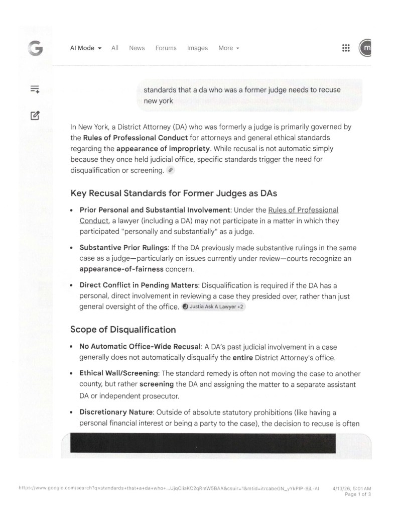 Subject: Immediate recusal of DA in people v Fishman